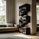 - Functional Benefits: The stacked shelves provide organized storage for books, journals, decorative objects, or everyday essentials. The curved central structure introduces visual flow while clearly defining each storage level. Mounted directly to the wall, the bookcase helps preserve floor space and supports a clean, uncluttered bedroom layout.