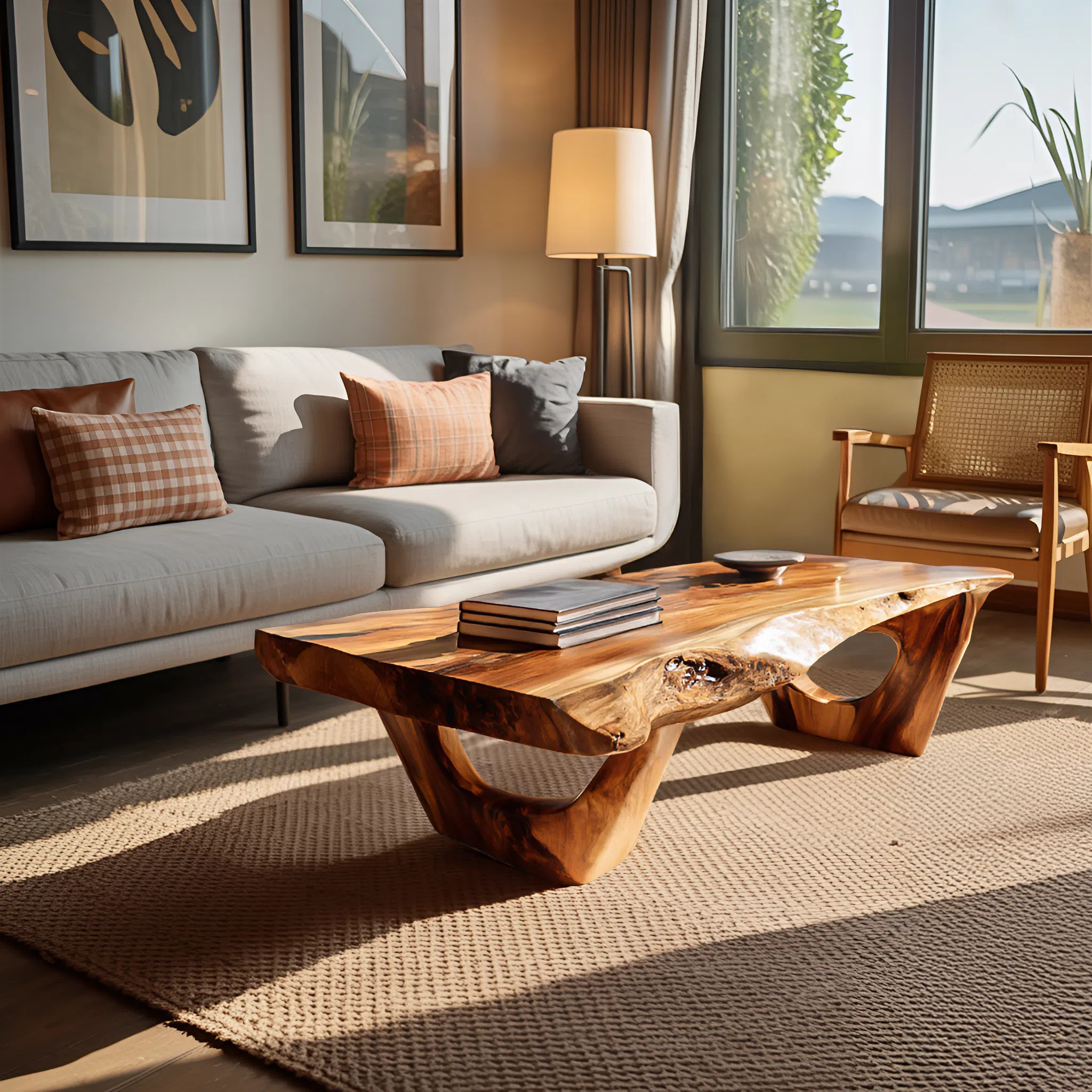 Balanced through natural contrast and sculpted restraint, Unique Centerpiece Coffee Table For Home Decor brings a calm yet expressive focal point to the living space. The organically contoured tabletop reveals uninterrupted wood grain and subtle edge variation, while the carved base introduces depth and visual flow beneath the surface. Together, these elements create a table that feels grounded and intentional, offering presence without overwhelming its surroundings.