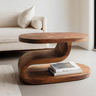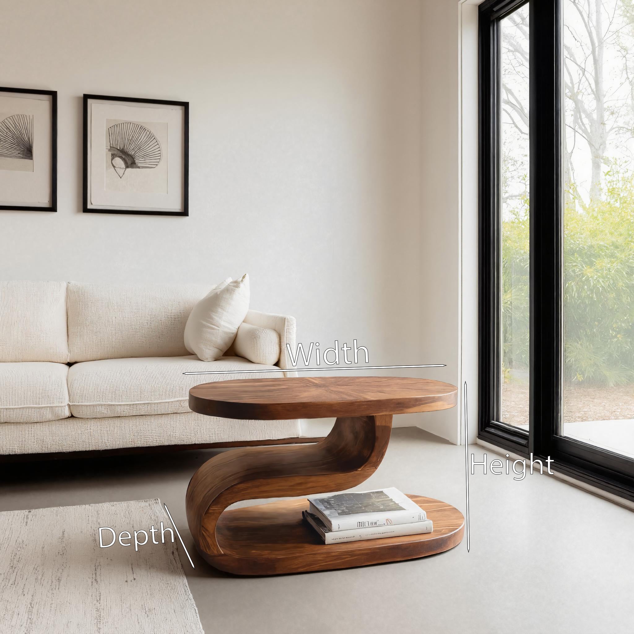 - Materials & Craftsmanship: Made from solid natural wood with expressive, flowing grain, the hand-shaped curved structure features smooth, refined edges. It is purposefully sanded and finished to highlight natural color variations with an eco-friendly protective oil finish for warmth and durability, and using strong joinery techniques for long-lasting durability.